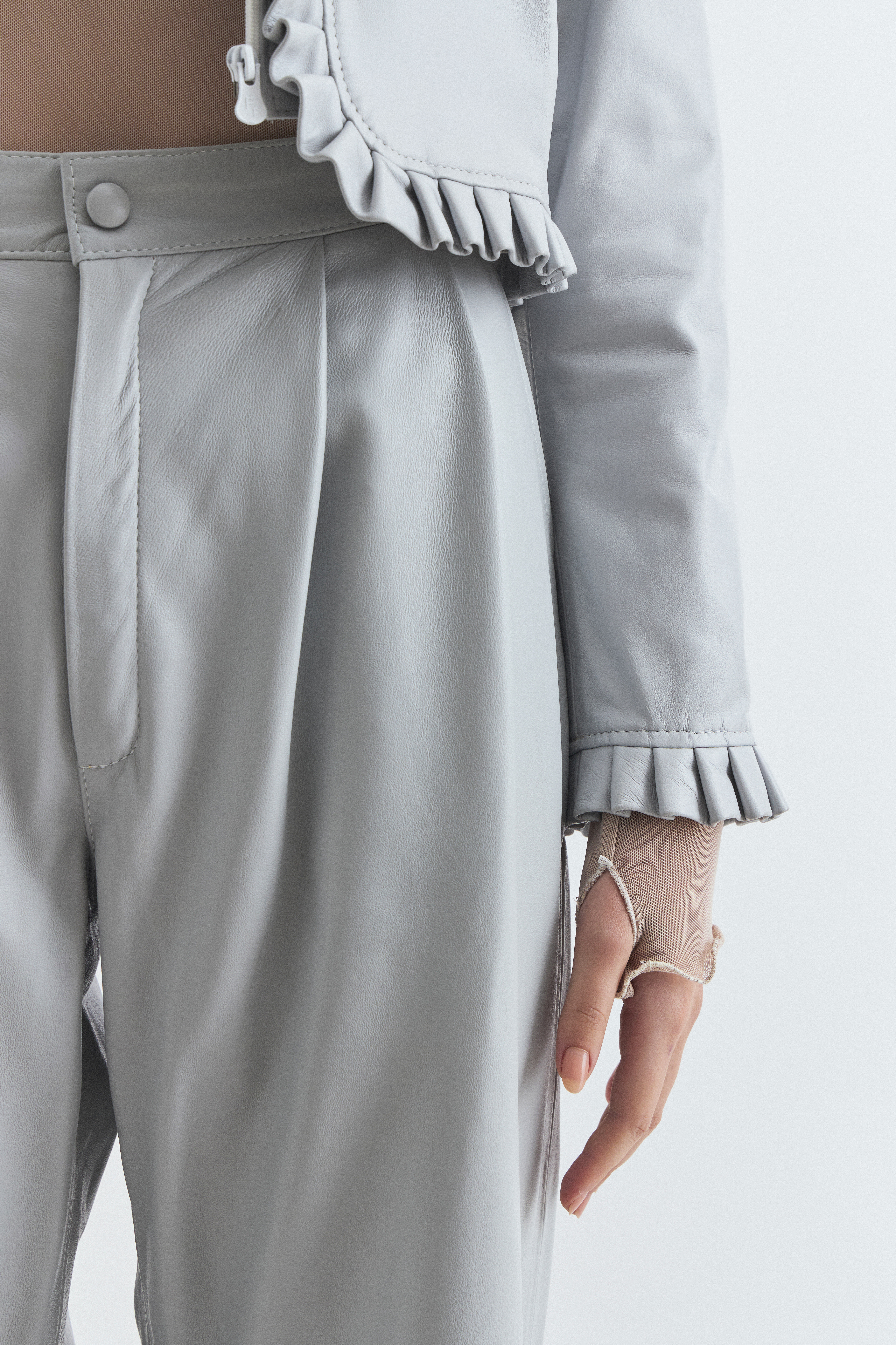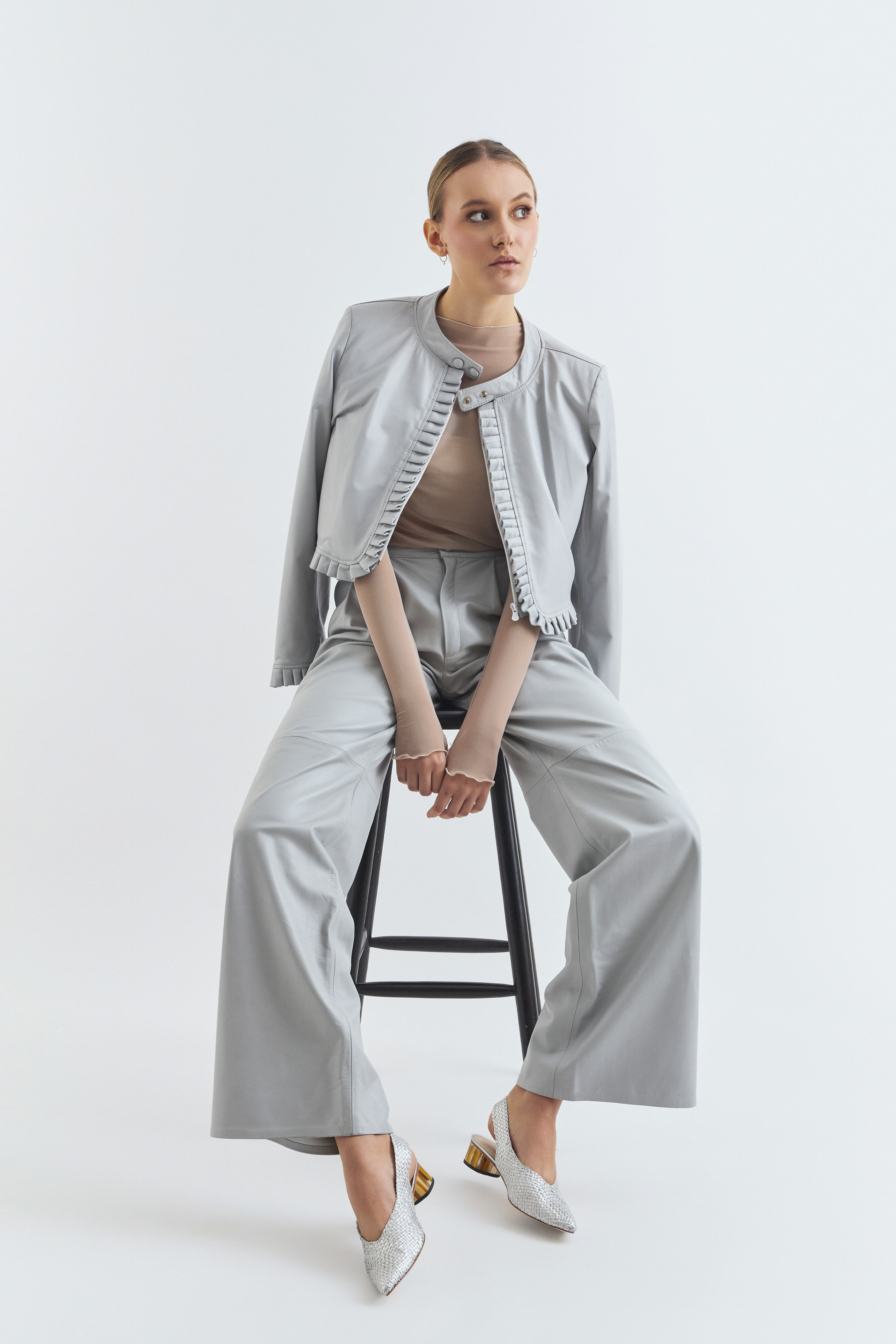 A alfaiataria em couro tornou-se um dos pilares da FELĪCIA PRETTO. O material, natural e nobre, apresenta variações de textura e marcas que atestam sua autenticidade. Trabalhar com couro exige precisão técnica e primor nos acabamentos, e a marca desenvolve peças que valorizam o toque, o caimento e a longevidade.